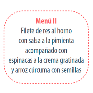 Cena Navidad para 1 persona que incluye: 1 Entrada a elección + Filete al Horno con Salsa a la Pimienta + Espinacas a la Crema + Arroz Cúrcuma con Semillas +1 Postre a elección. Revisar las opciones de Entradas y Postres al pie de esta página e indicar su preferencia en la casilla de "Observaciones" al momento de hacer el pago. Sólo se recibirán pedidos para los días 23 y 24 de diciembre. Los horarios de entrega ya se encuentran configurados en este sitio para esos días.
