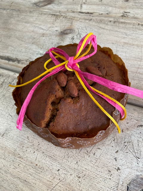 Delicioso pan de pascua artesanal, elaborado con puré de manzana, nueces, almendras, ciruelas y chocolate. Stock disponible.